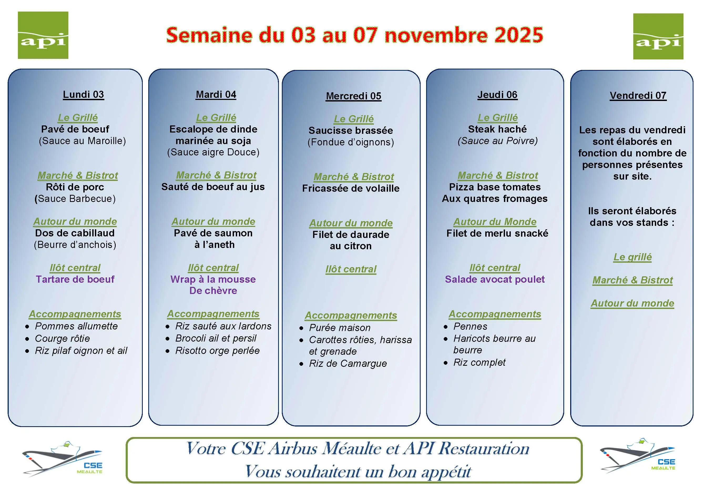 MENU du 03 au 07 novembre